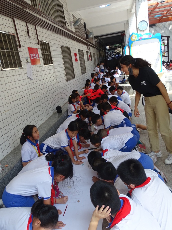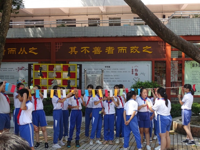 此次活動以周瑞珍校長為總指揮,德育處、教導(dǎo)處做好前期部署,不同年級分別開展不同的活動。一至三年級的學(xué)生變身小小藝術(shù)家,開動腦筋,親手制作一張張精美的紙盤創(chuàng)意繪畫,紙盤上有各種各樣的圖案,如嫦娥、玉兔、月亮等等,構(gòu)圖有趣,顏色鮮艷,一筆一畫充滿著濃濃的中秋情。四五年級的學(xué)生進(jìn)行“百人畫長畫”活動,場面壯觀。學(xué)生想象豐富,以自己的視角,用小小的畫筆表達(dá)對中秋節(jié)深深的祝福!六年級的學(xué)生猜燈謎,校園內(nèi)的小操場、棋藝園內(nèi)懸掛著彩帶,100多條燈謎競相爭輝,謎面科學(xué)而通俗、生動而活潑,有猜字的、有猜成語的、有猜人名的、有猜地名的……燈謎涉及的面廣而量大。學(xué)生認(rèn)真思考,熱烈討論,紛紛猜對燈謎,兌換一份心儀的獎品。校園內(nèi)一片歡聲笑語,全校學(xué)生玩得不亦樂乎!