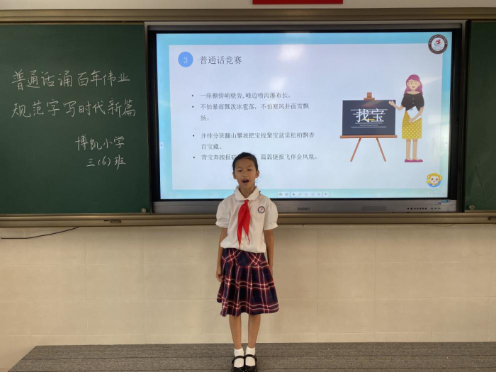 13日下午,博凱小學(xué)推普宣講員李宥汐在報(bào)告廳進(jìn)行主題為“推普頌黨史,共筑中國夢”的主題演講,結(jié)合黨史發(fā)展,聯(lián)動普通話和規(guī)范漢字的演變歷程,講述著中國語言文字的美,使灼灼中華情在同學(xué)們心中點(diǎn)燃。
