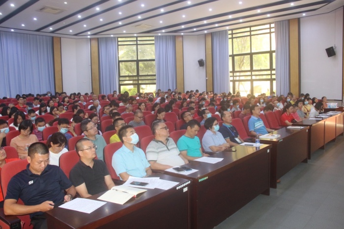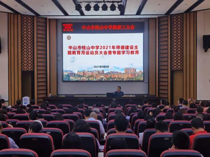9月9日,桂山中學(xué)在德馨樓一樓報(bào)告廳召開2021年師德建設(shè)主題教育月動(dòng)員大會(huì)并組織第一次專題學(xué)習(xí)教育,標(biāo)志著本學(xué)年師德建設(shè)正式拉開序幕。學(xué)校黨委書記、校長董再明同志為全體師生傳達(dá)中央、省、市文件精神,號(hào)召全體教師講規(guī)矩、守底線,做一名心無旁騖干事業(yè)、全心全意服務(wù)學(xué)生的優(yōu)秀教師。