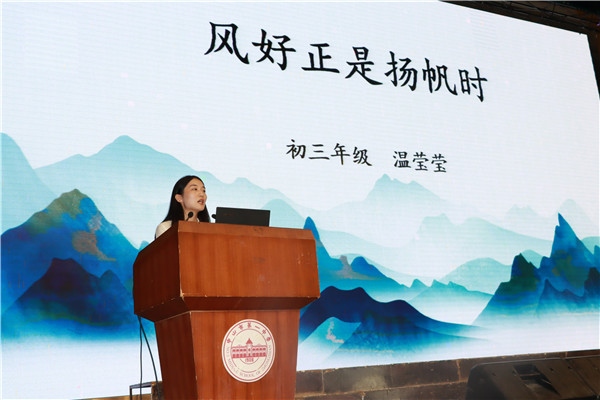 隨后,分別來自該校初、高中的溫瑩瑩老師、朱歡老師以及姚彬老師各自分享關(guān)于自己從教以來的所思、所想、所做。溫瑩瑩老師以“風(fēng)好正是揚帆時”為題,與同事們講述了自己的成長故事;朱老師歡則以“堅持、用心、感恩”詮釋了自己關(guān)于教師一職的感悟;姚彬老師則與在座老師分享了他“從教的時光印跡”,溫情滿滿。校黨委書記、校長王錫文同志也以“一生只為一事來”為題,與在場老師講述了自己對“教師”二字的感悟。他說:“老師們,教師不僅僅是一份職業(yè),更是一種為黨育人、為國育人的責(zé)任。身為師者,我們?nèi)沃囟肋h(yuǎn)……對教師來說,立德樹人是天職,點亮他人是信念。我們都要堅守這份信念,勇往直前,實現(xiàn)身為人師的價值。”