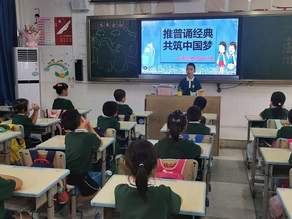 9月13日至19日是第24屆全國(guó)推普周。本屆推普周的主題是“普通話誦百年偉業(yè),規(guī)范字寫(xiě)時(shí)代新篇”。為大力弘揚(yáng)中華優(yōu)秀傳統(tǒng)文化,進(jìn)一步增強(qiáng)師生的語(yǔ)言文字規(guī)范意識(shí),五桂山學(xué)校開(kāi)展了“推廣普通話學(xué)習(xí)”系列活動(dòng)。