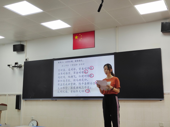 16日,組內(nèi)初賽如期舉行。13節(jié)課,13種風(fēng)格;13位青年教師,13種看家本領(lǐng)。授課內(nèi)容均選自國(guó)學(xué)啟蒙、經(jīng)典詩(shī)詞等中華優(yōu)秀傳統(tǒng)文化。有的老師運(yùn)用視頻、圖片等多媒體手段,帶領(lǐng)學(xué)生走進(jìn)詩(shī)詞,感受詩(shī)詞的韻味;有的老師深挖文本,由朗讀到吟誦再到配樂(lè)吟詠,由淺入深,引導(dǎo)學(xué)生讀中悟,體會(huì)詩(shī)人的心境;有的老師從實(shí)際出發(fā),提舉生活實(shí)例,讓學(xué)生在生活中接受傳統(tǒng)文化的熏陶,讓傳統(tǒng)美德如春風(fēng)潤(rùn)物細(xì)無(wú)聲般地浸潤(rùn)孩子的心田。執(zhí)教的老師扎實(shí)的課堂基本功、豐厚的文化底蘊(yùn)以及靈動(dòng)的課堂設(shè)計(jì)讓人印象深刻,課堂效果可謂精彩紛呈。