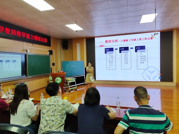 為提升教師數(shù)學(xué)專業(yè)水平,夯實(shí)教師的教學(xué)技能,加強(qiáng)教師教學(xué)能力,為中山市小學(xué)數(shù)學(xué)教學(xué)能力大賽做足準(zhǔn)備。2021年9月22日,在曹二小學(xué)階梯室開(kāi)展了古鎮(zhèn)鎮(zhèn)小學(xué)數(shù)學(xué)教師教學(xué)能力模擬比賽。古鎮(zhèn)鎮(zhèn)教體中心督學(xué)陳和添、鎮(zhèn)中心教研組長(zhǎng)許琰主任出席指導(dǎo)本次活動(dòng),古鎮(zhèn)各個(gè)學(xué)校的數(shù)學(xué)科組長(zhǎng)擔(dān)任本次比賽評(píng)委,曹二小學(xué)全體數(shù)學(xué)老師均參與本次活動(dòng)。