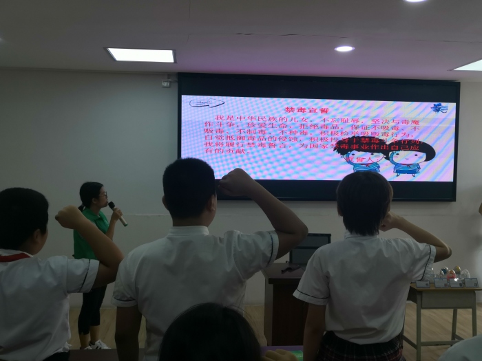 活動(dòng)中,鎮(zhèn)統(tǒng)戰(zhàn)辦向全校250多名少數(shù)民族學(xué)生送上了學(xué)習(xí)用品,向他們送上國(guó)慶節(jié)日祝福,寄語他們?cè)邳S圃這塊有愛的土地上快樂茁壯成長(zhǎng),為實(shí)現(xiàn)強(qiáng)國(guó)夢(mèng)貢獻(xiàn)力量!現(xiàn)場(chǎng)的宣傳攤位擺放了民族、禁毒、消費(fèi)維權(quán)及反傳銷的傳單,仿真毒品及民族宣傳的海報(bào),同學(xué)們認(rèn)真聽取工作人員的講解,初步掌握了相關(guān)的基礎(chǔ)知識(shí)。為加強(qiáng)教育效果,鎮(zhèn)司法所邀請(qǐng)了瑋德律師事務(wù)所的成世鴻律師開展民族宗教政策宣講,成律師以案說法,詳細(xì)解讀了有關(guān)民族政策法規(guī)及其實(shí)踐等知識(shí),讓少數(shù)民族學(xué)生增強(qiáng)民族意識(shí),充分認(rèn)識(shí)自己應(yīng)享受的權(quán)利和義務(wù)。由黃圃市場(chǎng)監(jiān)管分局的工作人員進(jìn)行反傳銷、消費(fèi)維權(quán)知識(shí)有獎(jiǎng)問答游戲,現(xiàn)場(chǎng)氣氛活躍,同學(xué)們互動(dòng)中學(xué)習(xí)了傳銷的概念、特點(diǎn)與危害及其預(yù)防方法,在日常消費(fèi)中維權(quán)的途徑等,引導(dǎo)同學(xué)們要當(dāng)好“宣傳員”,回家向家長(zhǎng)宣傳好“反傳銷”及消費(fèi)維權(quán)的知識(shí),切實(shí)維護(hù)好自身權(quán)益。為防止新型毒品的濫用,鎮(zhèn)禁毒辦社工通過課件,圖文并茂,向六年級(jí)的全體學(xué)生深入淺出地普及了“上頭電子煙”、咔哇潮飲、神仙水等新型毒品特點(diǎn)及危害,毒販誘騙青少年吸毒的常用套路和拒毒“防身術(shù)”。同學(xué)們還進(jìn)行禁毒宣誓,成為一名禁毒小衛(wèi)士,用實(shí)際行動(dòng)投入禁毒斗爭(zhēng)行列。鎮(zhèn)防范辦工作人員通過發(fā)放反邪宣傳資料、參觀反邪宣傳展板等形式,結(jié)合真實(shí)案例,從邪教的種類、邪教的特征、如何防范和抵御邪教三方面向廣大師生重點(diǎn)講解什么是邪教、邪教與宗教的區(qū)別、邪教的危害以及相關(guān)法律法規(guī)知識(shí),教導(dǎo)他們要從小樹立“崇尚科學(xué) 反對(duì)邪教”的觀念。
